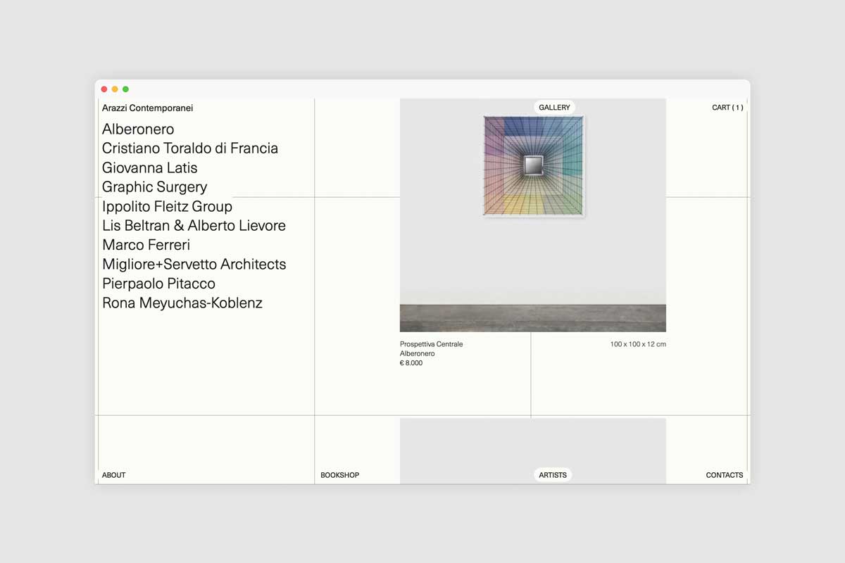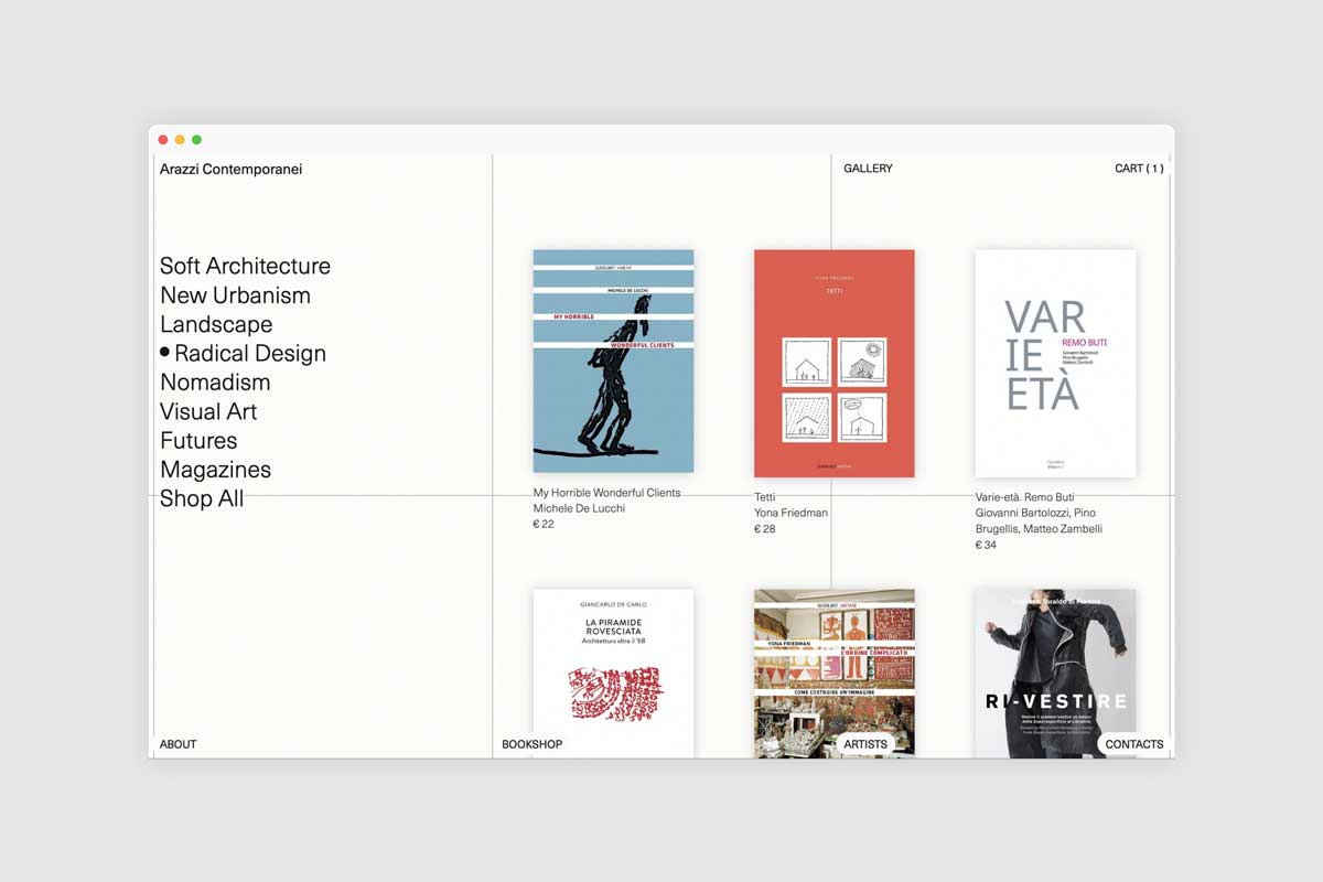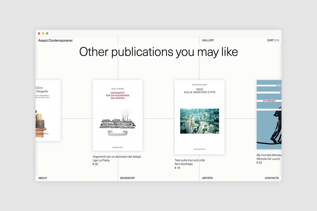 Digital Art Gallery website with e-commerce, bookstore and editorial space.