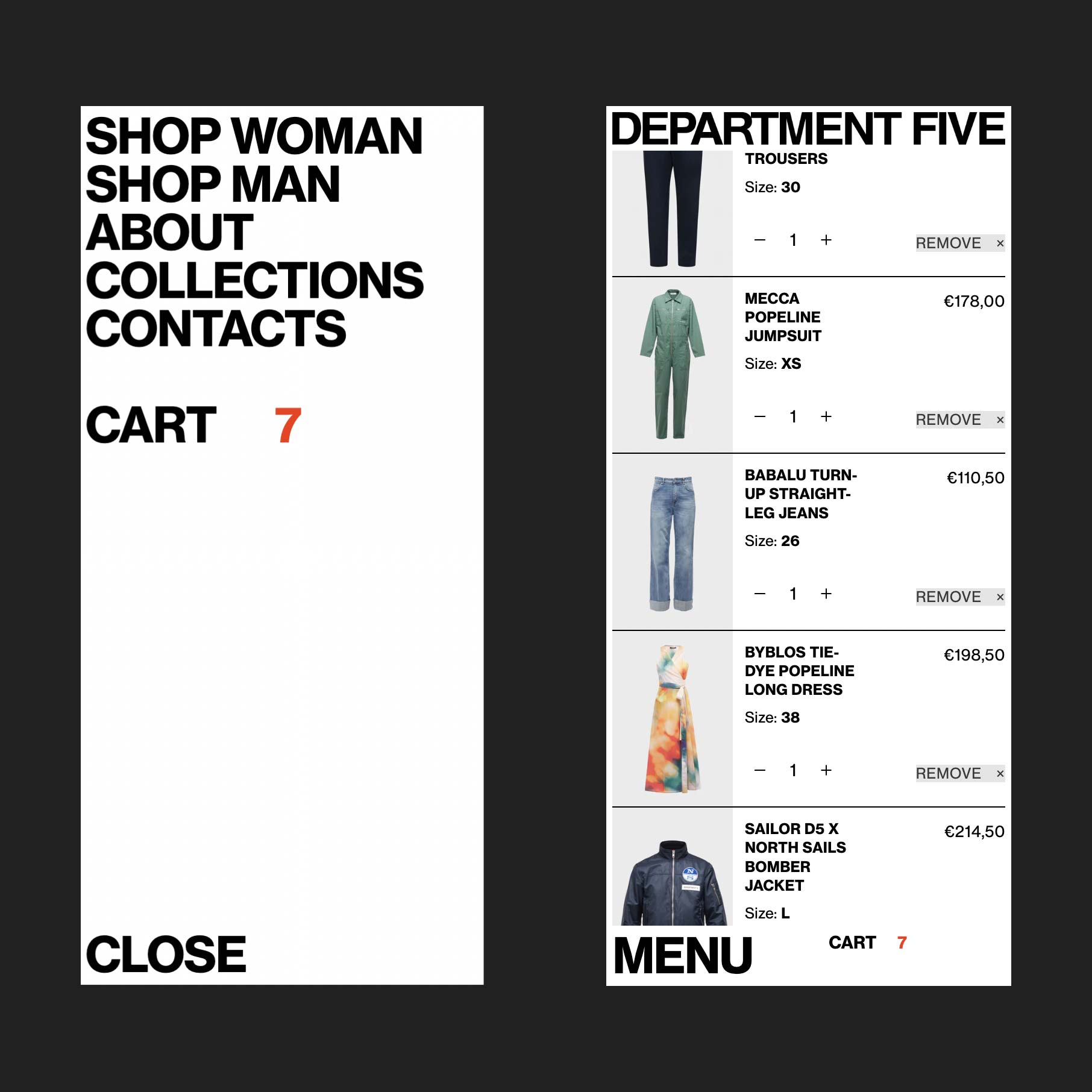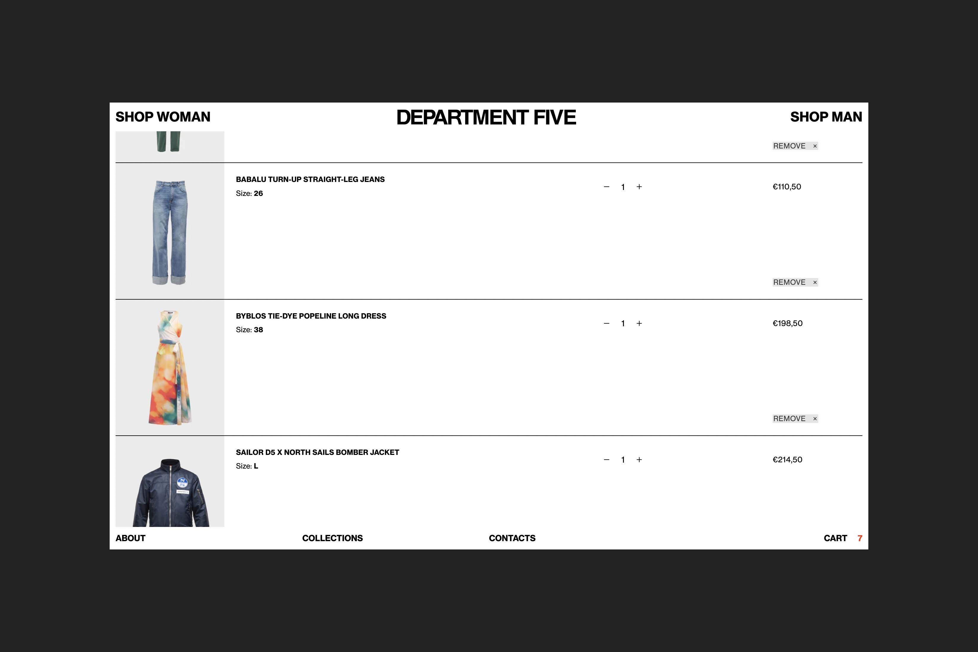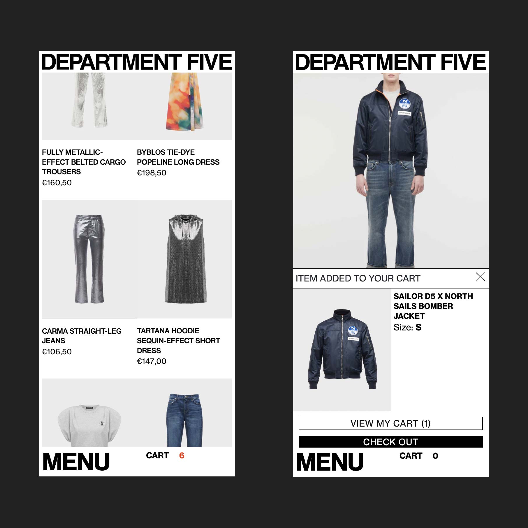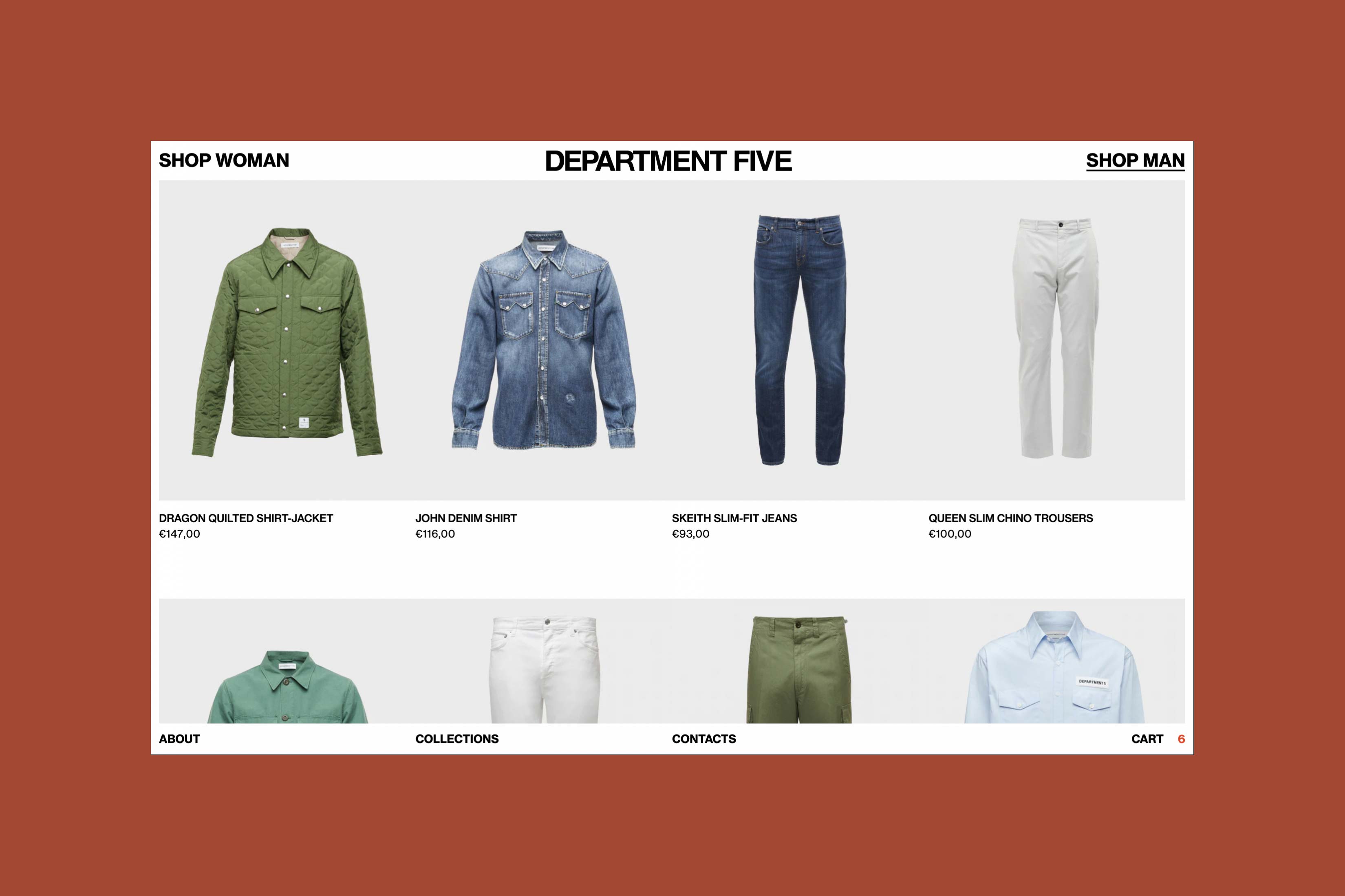 Department Five is an Italian fashion brand founded in 2007 by Mario Cangini and Nicola Silvagni that blends workwear with rational functionality while drawing inspiration from the rock music scene. In 2021 they launched their e-commerce website and I took care of its web development while working closely with designers. The challenge was to embed the brand personality into an e-commerce type website, with this in mind the website has designed been developed to be bold yet functional, with a brutalist layout that is however rationally structured into a grid and few interaction effects intentionally subtle but strong.